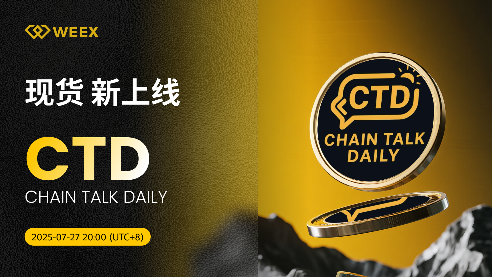 我们很高兴地宣布 CHAIN TALK DAILY (CTD) 现已正式登陆WEEX现货交易区!即日起,您可在WEEX平台进行 CTD/USDT交易,详情如下: