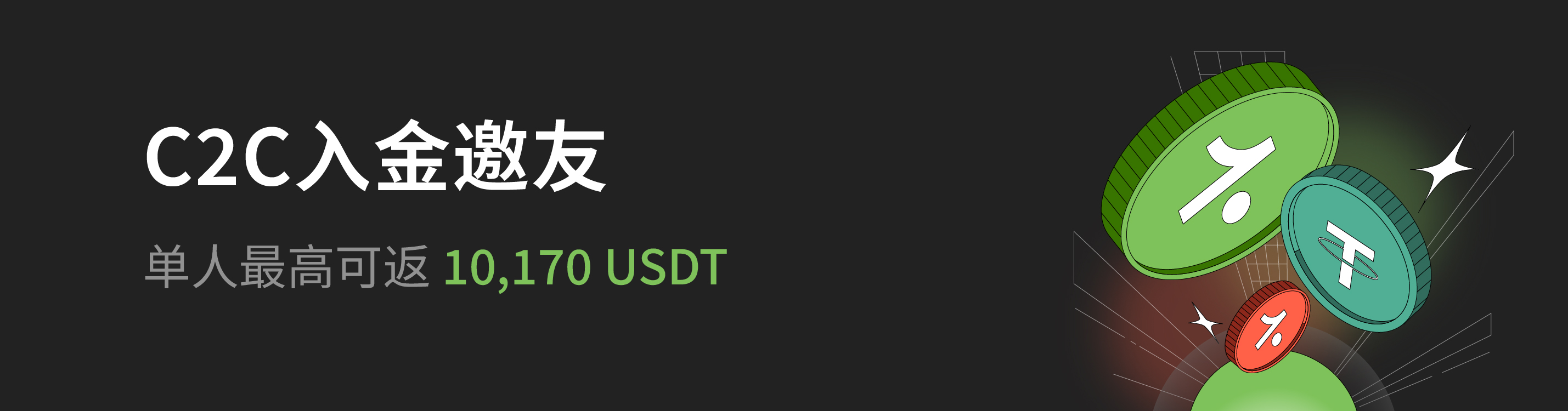 C2C入金、邀友双重奖励,单人最高可返 10,170 USDT