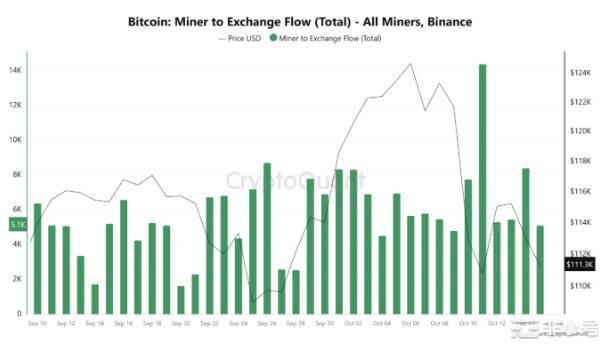 鏈上數據顯示,10 月 9 日至 10 月 16 日期間,礦工累計向幣安存入約 51,000 枚 BTC,創近月新高。分析指出,礦工短期集中轉入交易所通常意味由持有轉向出售,被視為對價格波動的預期反應。此舉對現貨供給構成短期壓力,進一步加劇資金流出效應。