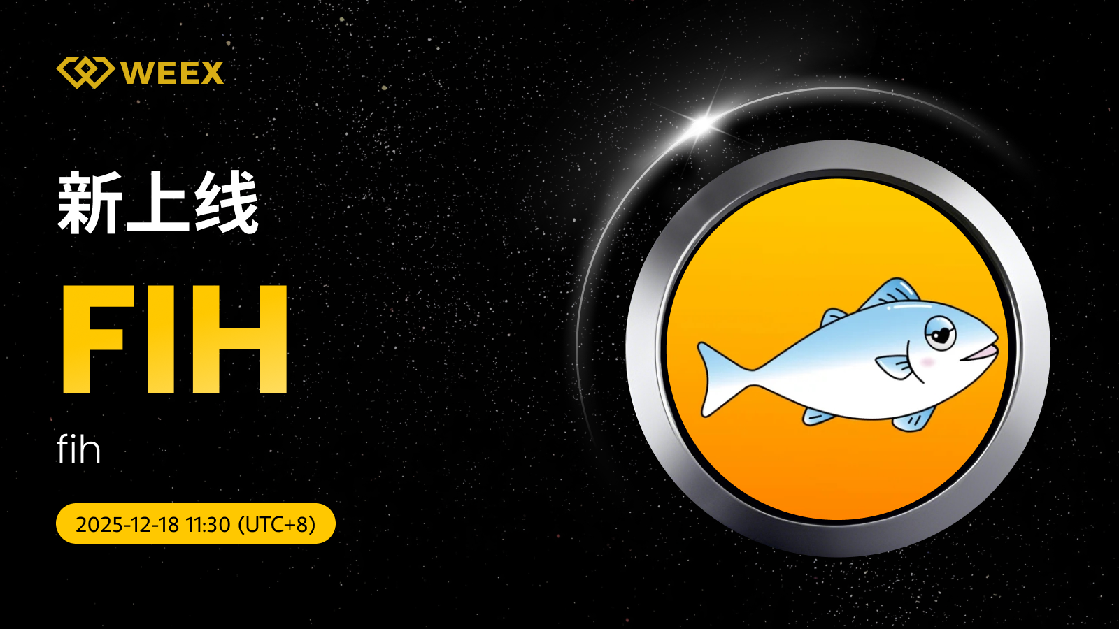 fih (FIH) 现已上线WEEX! Weex 2025年12月18日 03:31 微信扫一扫分享到朋友或朋友圈 尊敬的WEEX用户:FIH/USDT交易对正式上线WEEX。具体安排如下:充值:即将开放交易:2025年12月18日11:30(UTC 8)正式开放提现:即将开放立即交易:FIH/USDT fih (FIH) 更多信息:fih代币源于Twitter用户@fih_usd1关于可爱鱼meme的推文报道,背景为一条调皮蓝鱼在黄色海洋中冒险的搞笑故事。 官网X账号交易手续费