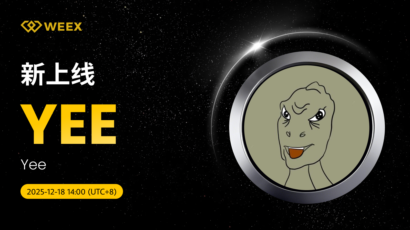 Yee (YEE) 现已上线WEEX! Weex 2025年12月18日 06:07 微信扫一扫分享到朋友或朋友圈 尊敬的WEEX用户:YEE/USDT交易对正式上线WEEX。具体安排如下:充值:即将开放交易:2025年12月18日14:00(UTC 8)正式开放提现:即将开放立即交易:YEE/USDT Yee (YEE) 更多信息:首个在以太坊上部署的 $YEE——真正的元老级模因币,在 $PEPE 推出仅 14 天后就上线了!现在由充满热情的 CTO 社区领导。 官网X账号交易手续费