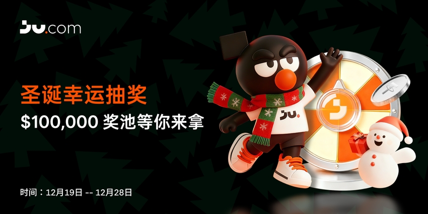 圣诞热门币幸运抽奖活动火热上线中,$100,000 奖池等你来拿!交易热门币对或邀请好友,即可获得抽奖机会!ETH、USDT、JU 等好礼等你来抽,越交易,机会越多!暖冬圣诞好礼已加载完成,每一次抽奖都是惊喜!立即参与,解锁你的专属幸运奖励吧!