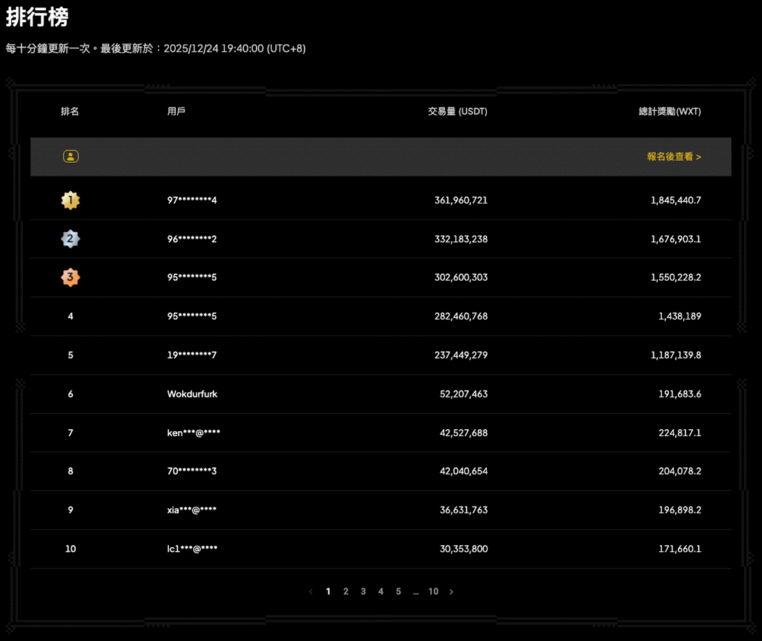 作为一项用户回馈活动,「合约挖矿」旨在与用户共享平台增长红利。活动期间,用户每进行一笔合约交易,均可实时获得以平台币 WXT 发放的手续返还。该活动自推出以来受到用户热烈支持,平台交易量屡创新高。据 WEEX 官网数据显示,截至 12 月 24 日 18:00 (UTC+8),仅「合约挖矿」排行榜前 100 名用户的交易额就已超过 21.8 亿 USDT、挖矿奖励超过 1,125 万 WXT。