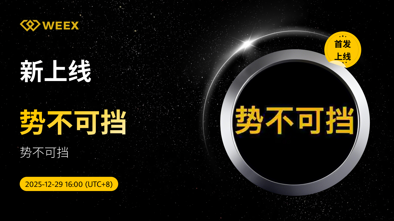 势不可挡 (势不可挡) 现已上线WEEX! Weex 2025年12月29日 08:16 微信扫一扫分享到朋友或朋友圈 尊敬的WEEX用户:势不可挡/USDT交易对正式上线WEEX。具体安排如下:充值:即将开放交易:2025年12月29日16:00(UTC 8)正式开放提现:即将开放立即交易:势不可挡/USDT 势不可挡 (势不可挡) 更多信息:势不可挡代币源于BNBCHAIN关于区块链生态系统迅猛扩张的推文报道,背景为BNB Chain迎来新一轮用户激增和DeFi项目爆发。 X账号交易手续费