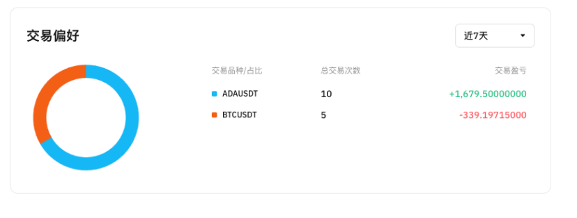 - 指定周期内,可查看该专家的交易偏好,涵盖偏好交易品种/占比、总交易次数、交易盈亏等核心交易习惯。