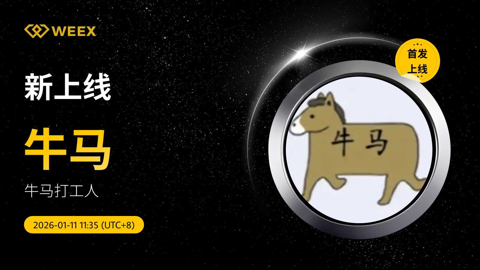 牛马打工人 (牛马) 现已上线WEEX! Weex 2026年01月11日 03:37 微信扫一扫分享到朋友或朋友圈 尊敬的WEEX用户:牛马/USDT交易对正式上线WEEX。具体安排如下:充值:即将开放交易:2026年01月11日11:35(UTC 8)正式开放提现:即将开放立即交易:牛马/USDT 牛马打工人 (牛马) 更多信息:牛马代币源于抖音上的职场吐槽推文,关于“牛马打工人”辛苦劳作的主题,背景为现代打工人日夜加班的辛酸生活,其标志展示了疲惫牛马背负重担的搞笑形象。 Trading fees