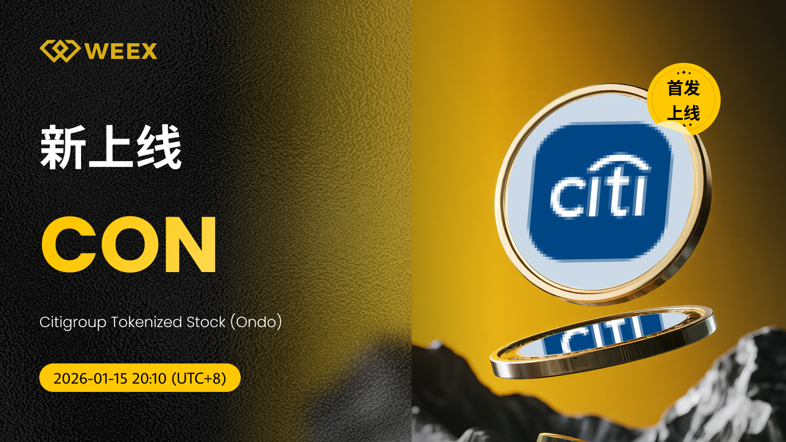 Citigroup Tokenized Stock (Ondo) (CON) 现已上线WEEX!