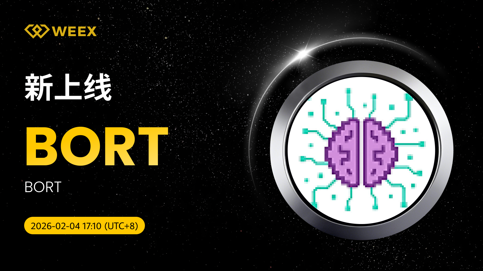 BORT (BORT) 现已上线WEEX! Weex 2026年02月04日 09:19 微信扫一扫分享到朋友或朋友圈 尊敬的WEEX用户:BORT/USDT交易对正式上线WEEX。具体安排如下:充值:即将开放交易:2026年02月04日17:10(UTC 8)正式开放提现:即将开放立即交易:BORT/USDT BORT (BORT) 更多信息:使用 BORT 推出您的可交易代理! WebsiteX accountTrading fees