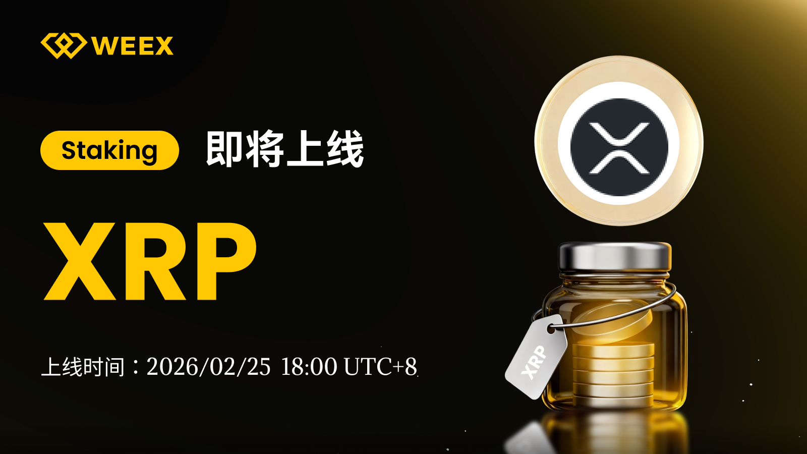 WEEX 将于 2026/02/25 18:00 UTC 8 正式上线 XRP Staking,