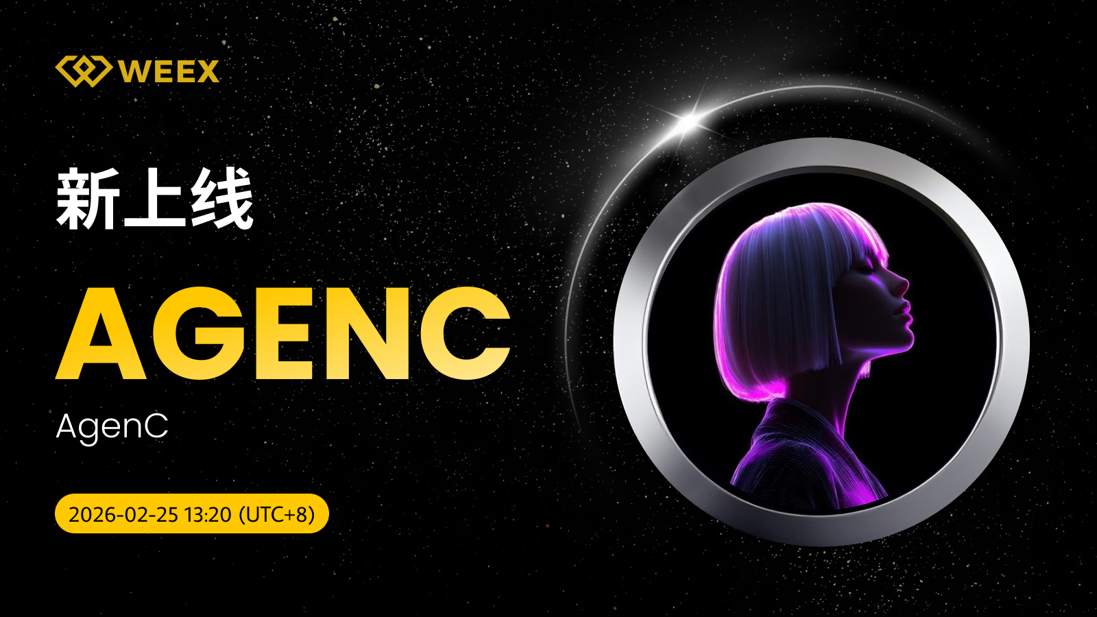 AgenC (AGENC) 现已上线WEEX! Weex 2026年02月25日 05:22 微信扫一扫分享到朋友或朋友圈 尊敬的WEEX用户:AGENC/USDT交易对正式上线WEEX。具体安排如下:充值:即将开放交易:2026年02月25日13:20(UTC 8)正式开放提现:即将开放立即交易:AGENC/USDT AgenC (AGENC) 更多信息:Solana 上的自主代理。 WebsiteX accountTrading fees