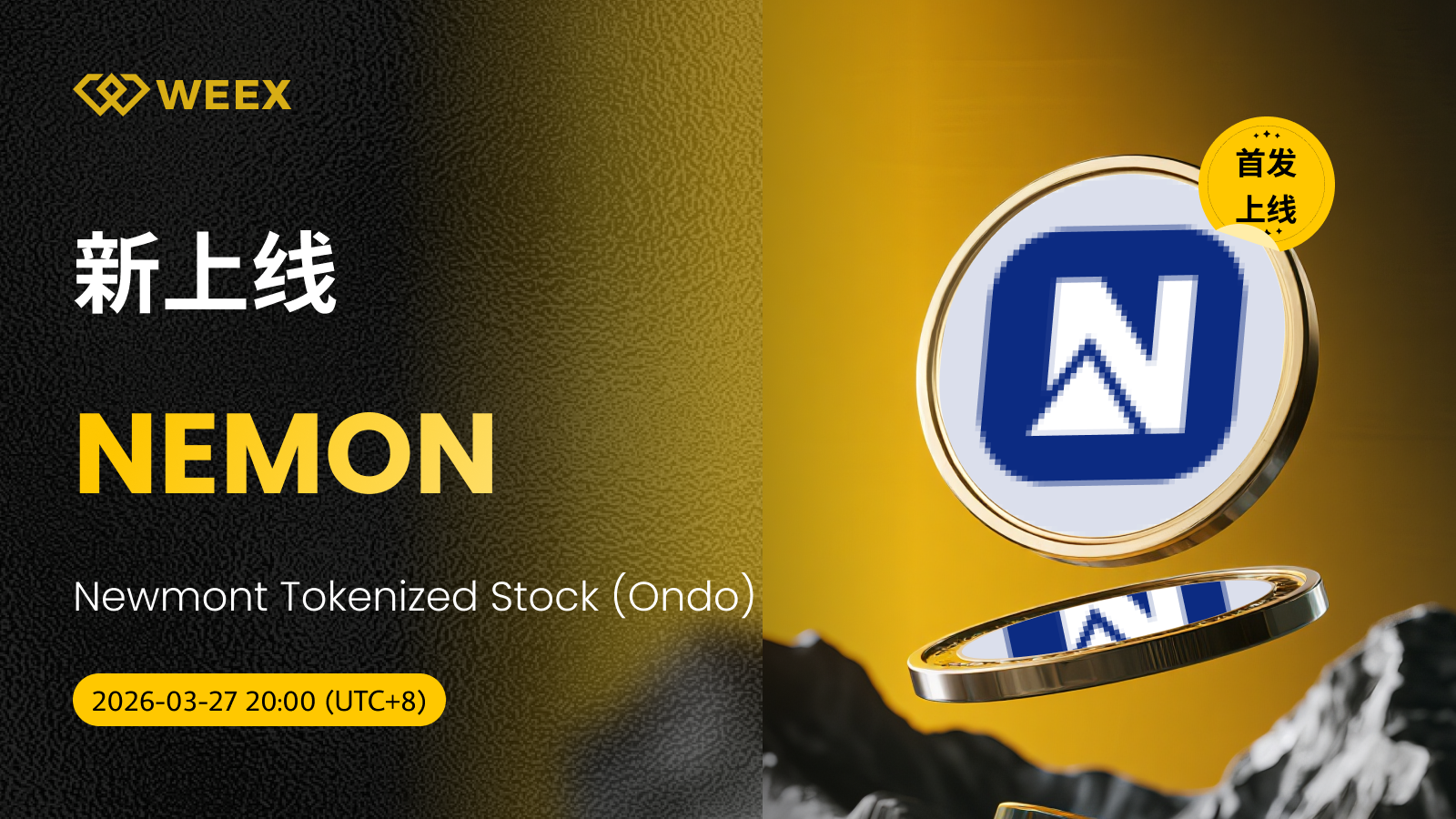 【首发】Newmont Tokenized Stock (Ondo) (NEMON) 现已上线WEEX!