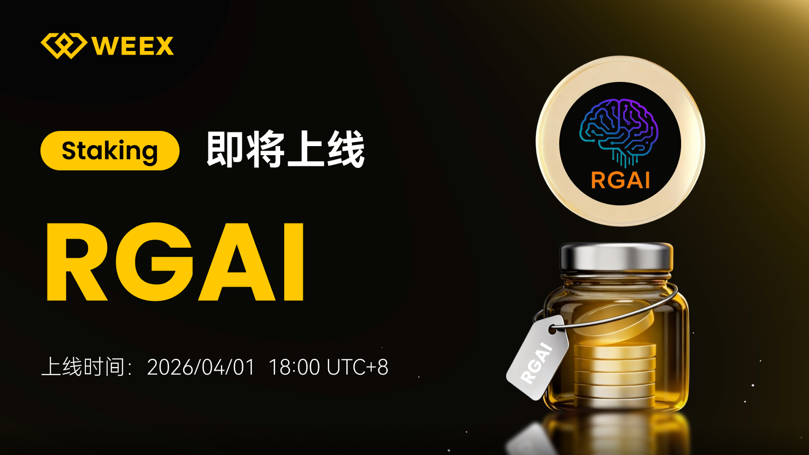 WEEX 将于 2026/04/01 18:00 UTC 8 正式上线 RGAI Staking,