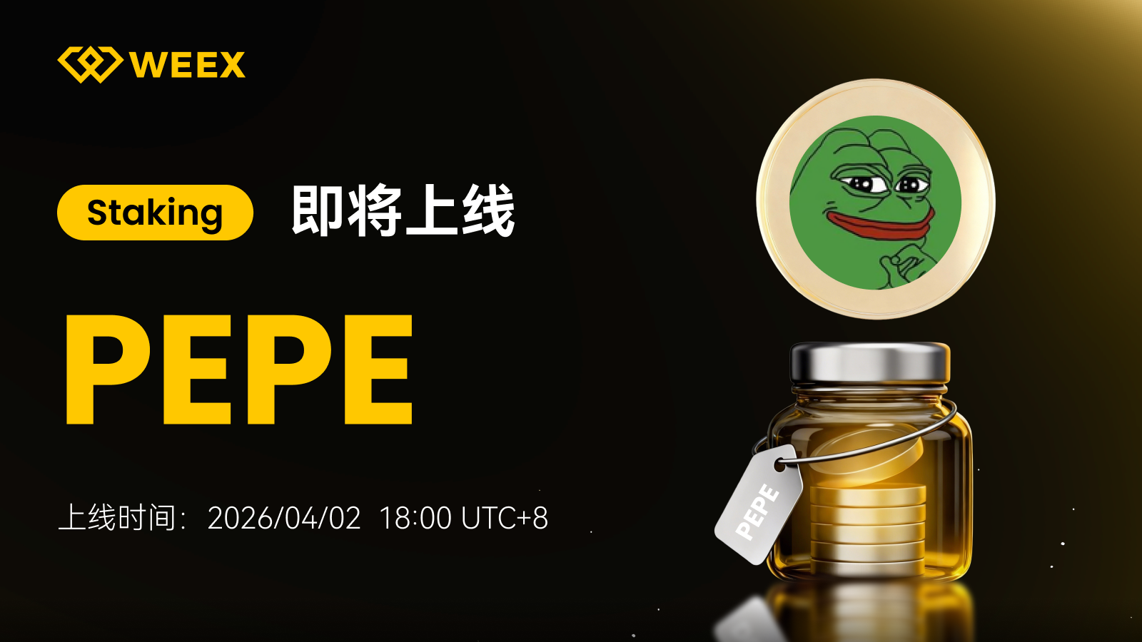 WEEX 将于 2026/04/02 18:00 UTC 8 正式上线 PEPE Staking,