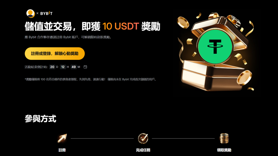 从当前活动页面信息来看,本次活动重点围绕“注册、储值、交易、领奖励”这一清晰路径展开。用户通过指定合作邀请入口注册或登录 BYBIT 账户后,在任务期限内完成相应条件,即可参与本次奖励领取。