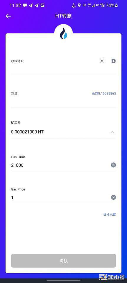 2、转账方式分为【地址簿转账】【扫码转账】两种方式,我们根据自己习惯的方式选择即可。转账界面请认真填入并核对收款地址和转出数量是否正确;矿工费支持自定义设置,调整交易处理速度;【高级功能】可以自定义输入【gas费】并发送上链。
