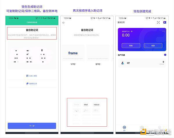 2、资金助记词备份:严格按照提示操作,按顺序保存助记词,强烈建议线下抄写保存,点击【下一步】再次按顺序输入刚保存助记词,即完成